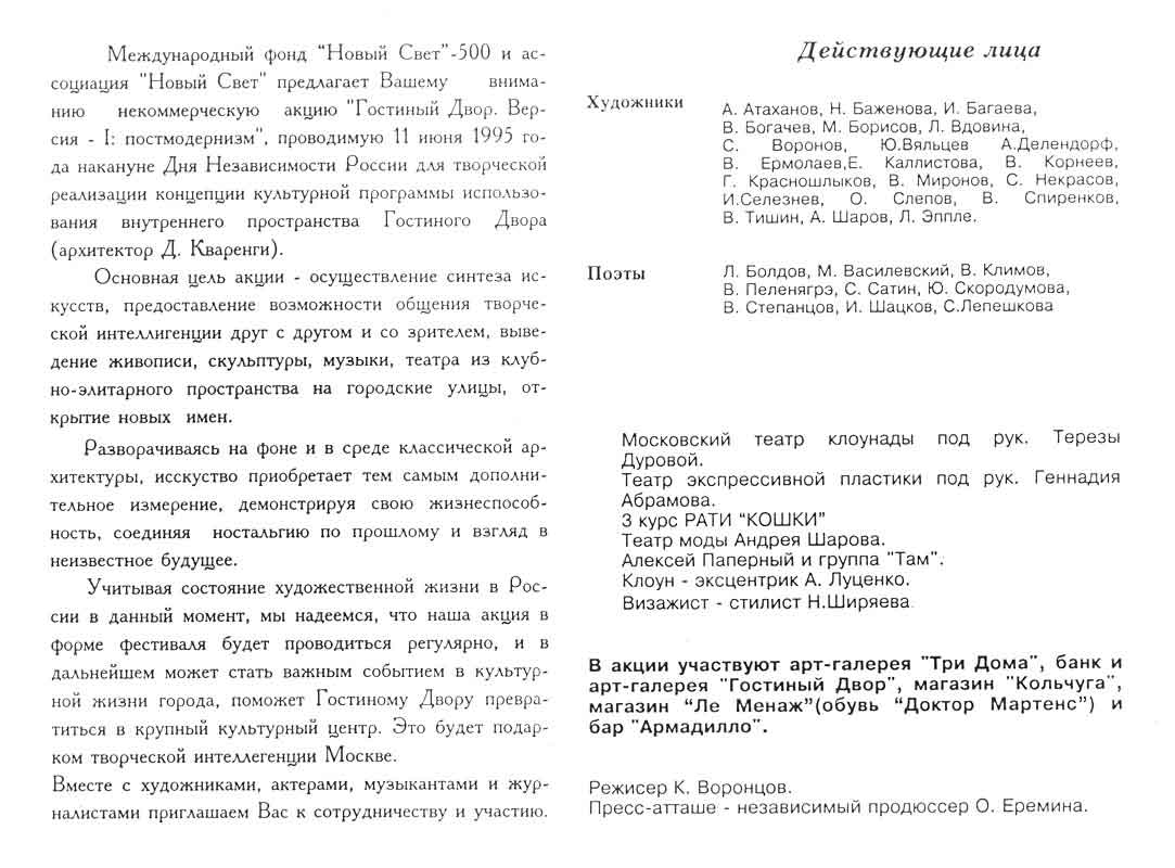 Пригласительный билет выставки в Гостинном дворе