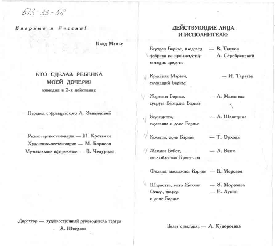 Программа спектакля «Кто сделал ребенка моей дочери?» в Дзержинске