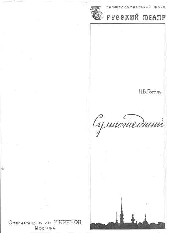 Программа спектакля «Сумасшедший» по произведению Н.Гоголя.